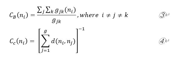 2.Betweenness Centrality: Betweenness centrality measures how important a node is to the shortest paths through the network.[3] The specific calculation formula of a node’s betweenness centrality is shown in Formula③.